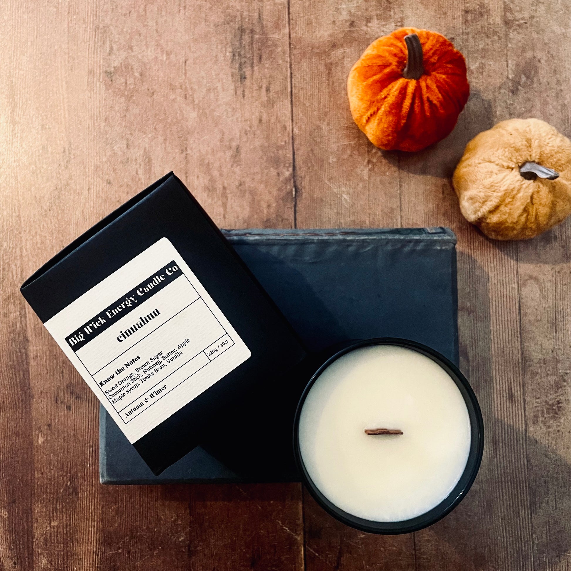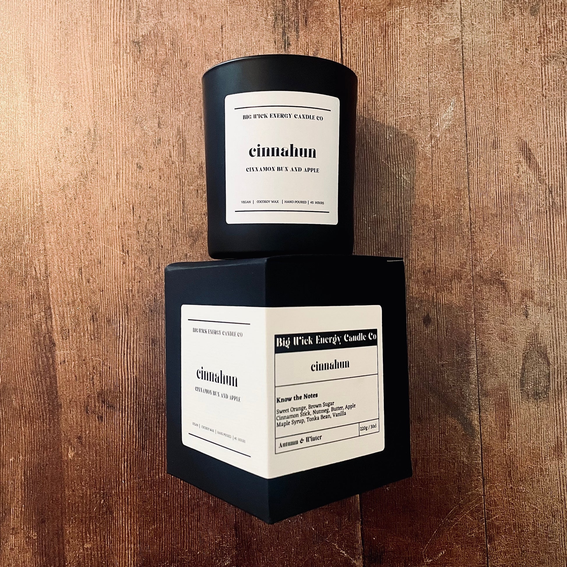 Our "cinnahun" candle is a cozy and autumnal fragrance capturing the comforting and spiced notes of cinnamon buns and the sweetness of apple.