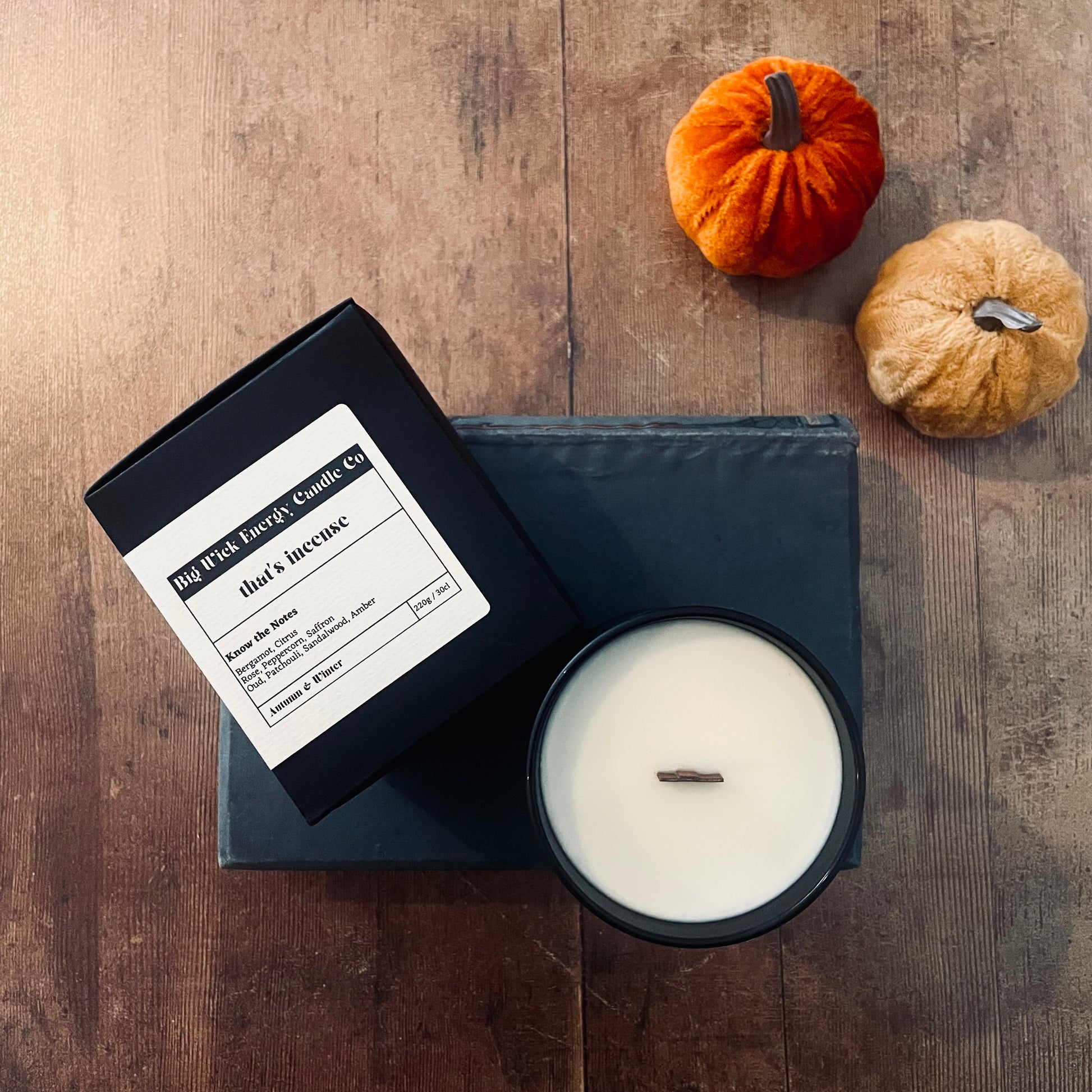 Our "that’s incense" candle is a rich and exotic fragrance capturing the deep and luxurious notes of oud and peppercorn, the subtle floral scent of rose and refreshing notes of citrus.